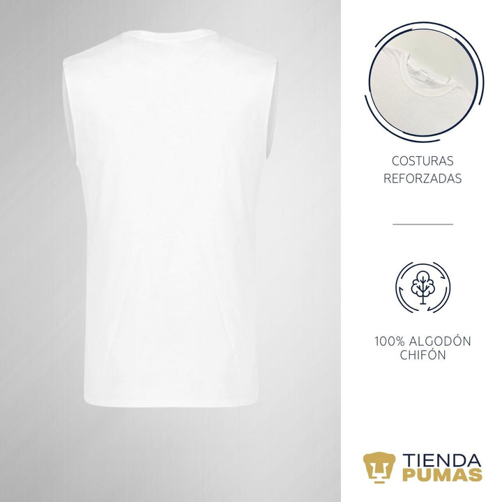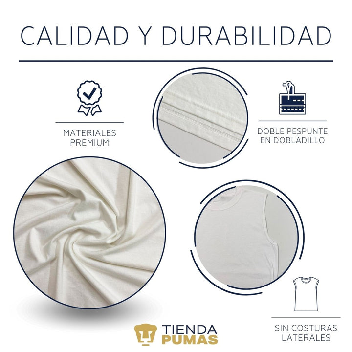 - ORIGINALIDAD Y SOSTENIBILIDAD: Playera de hombre sin manga, Producto Oficial con un diseño original de Pumas UNAM con estampado vinil e impresión con tecnología DTG (directo a la prenda) tacto cero. Se utilizan tintas ecológicas sin contaminantes que se adhieren a las fibras de la ropa, garantizando calidad, colores vivos e imagen de larga duración en la camiseta sin comprometer el planeta.