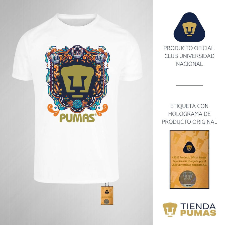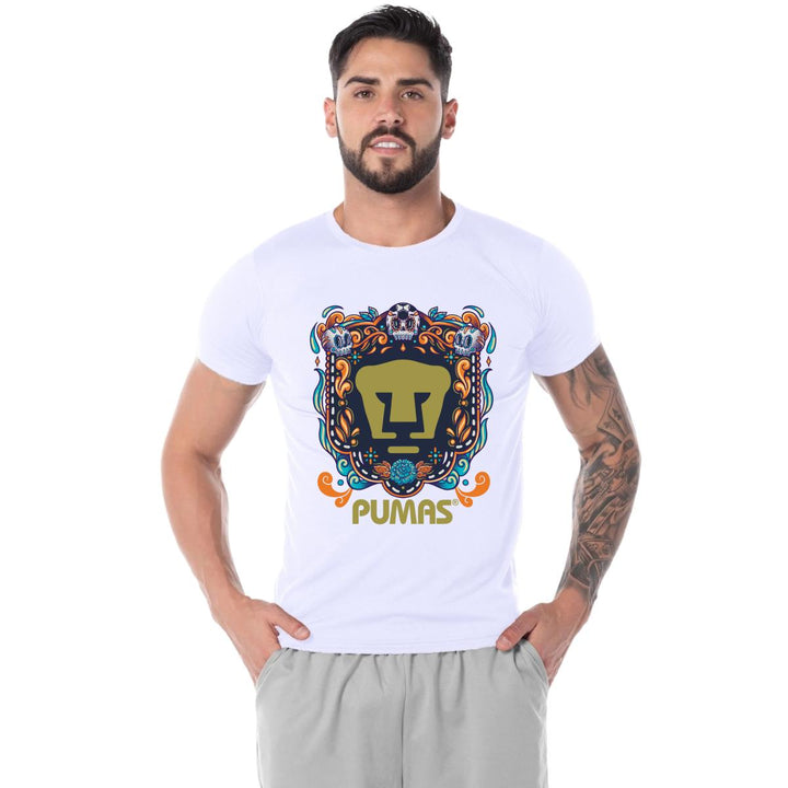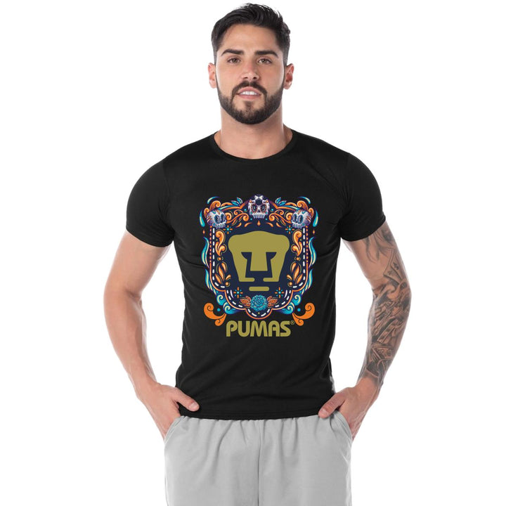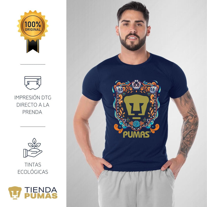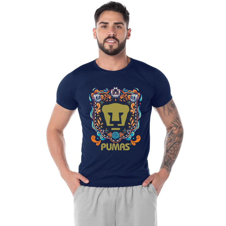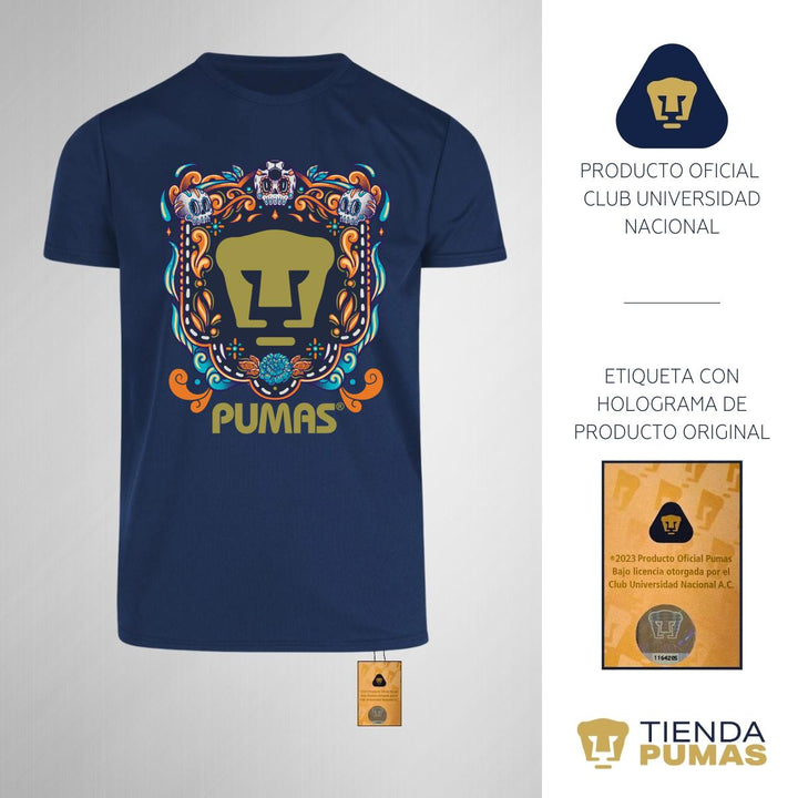 Playera Transpirable Hombre Pumas UNAM Día de Muertos Celeste