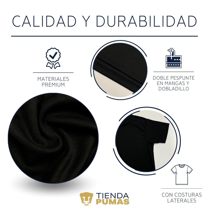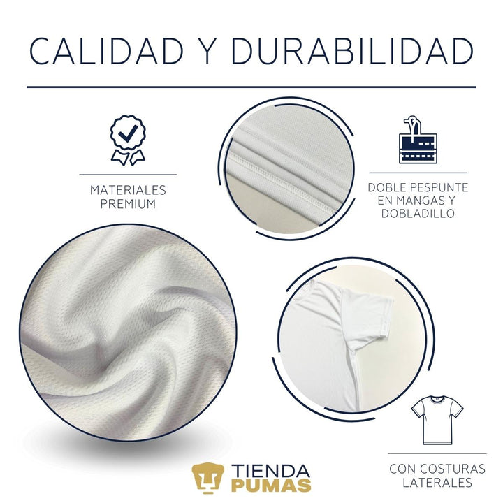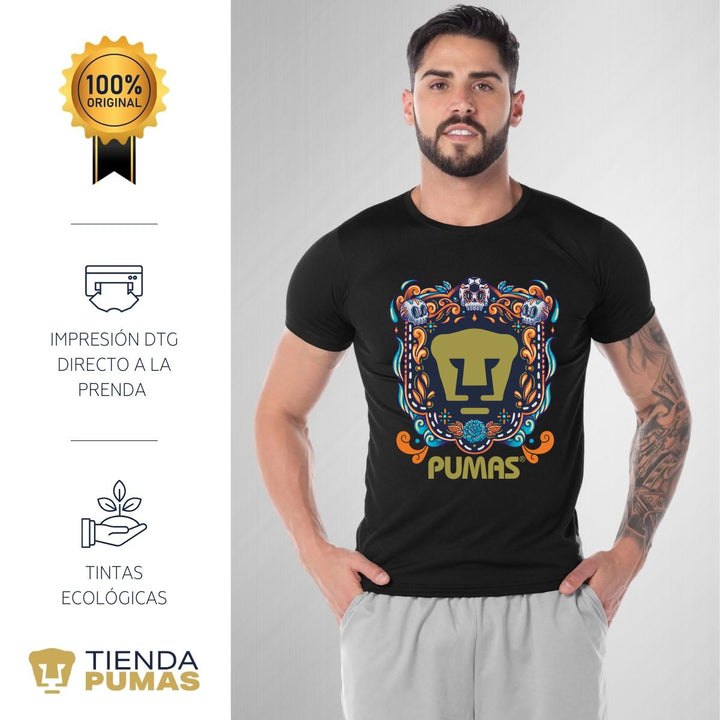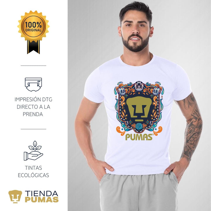 - ORIGINALIDAD Y SOSTENIBILIDAD: Playera transpirable de hombre manga corta. Producto Oficial con diseño original de Pumas UNAM impreso con tecnología DTG (directo a la prenda) tacto cero. Se utilizan tintas ecológicas sin contaminantes que se adhieren a las fibras de la ropa, garantizando calidad, colores vivos e imagen de larga duración en la camiseta sin comprometer el planeta. La playera cuenta además con etiqueta y holograma que garantiza un producto 100% original de Pumas UNAM.