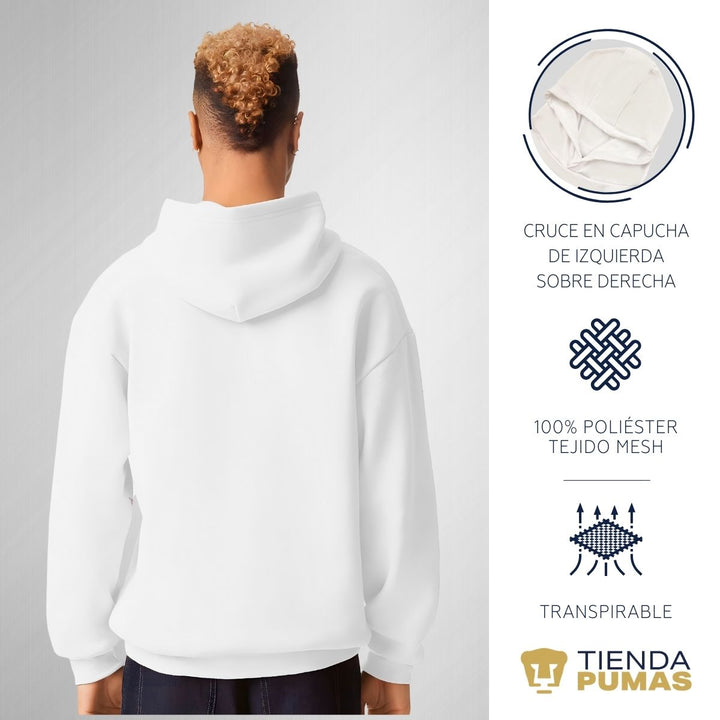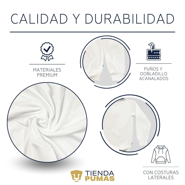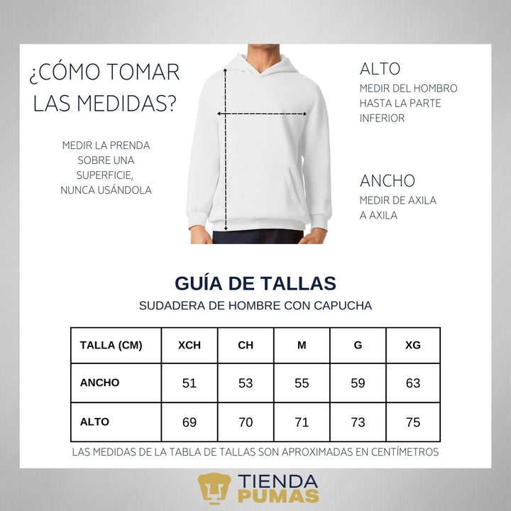 - ORIGINALIDAD: Sudadera de adulto con capucha, Producto Oficial con un diseño original de Pumas UNAM impreso con tecnología DTG (directo a la prenda) tacto cero. La sudadera cuenta con etiqueta y holograma que garantiza un producto 100% original de Pumas UNAM.