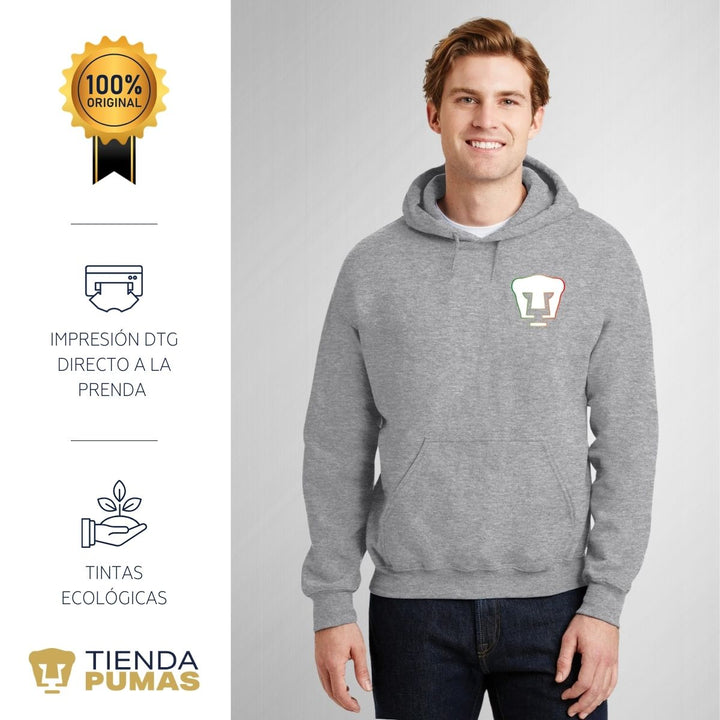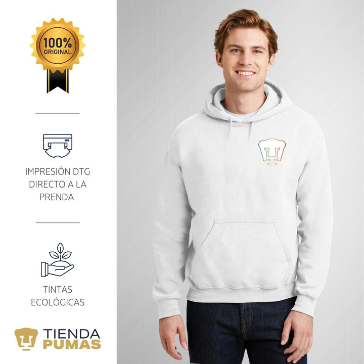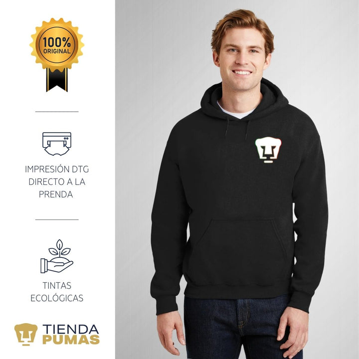 - ORIGINALIDAD Y SOSTENIBILIDAD: Sudadera de adulto con capucha, Producto Oficial con un diseño original de Pumas UNAM impreso con tecnología DTG (directo a la prenda) tacto cero. Se utilizan tintas ecológicas sin contaminantes que se adhieren a las fibras de la ropa, garantizando calidad, colores vivos e imagen de larga duración en la sudadera sin comprometer el planeta. La sudadera cuenta con etiqueta y holograma que garantiza un producto 100% original de Pumas UNAM.
