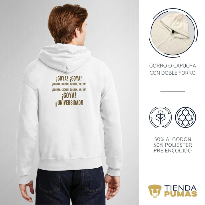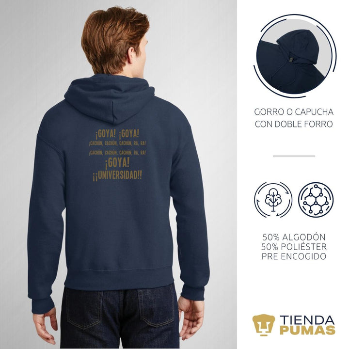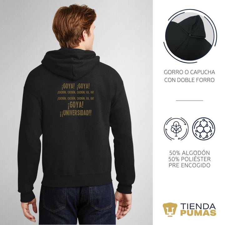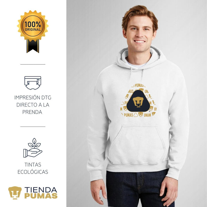 - ORIGINALIDAD Y SOSTENIBILIDAD: Sudadera de adulto con capucha, Producto Oficial con un diseño original de Pumas UNAM impreso con tecnología DTG (directo a la prenda) tacto cero. Se utilizan tintas ecológicas sin contaminantes que se adhieren a las fibras de la ropa, garantizando calidad, colores vivos e imagen de larga duración en la sudadera sin comprometer el planeta. La sudadera cuenta además con etiqueta y holograma que garantiza un producto 100% original de Pumas UNAM.