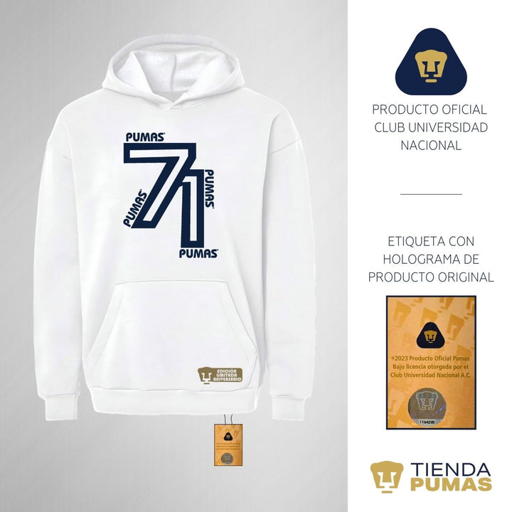 - ORIGINALIDAD: Sudadera de adulto con capucha, Producto Oficial con un diseño original de Pumas UNAM impreso con tecnología DTG (directo a la prenda) tacto cero. La sudadera cuenta con etiqueta y holograma que garantiza un producto 100% original de Pumas UNAM.