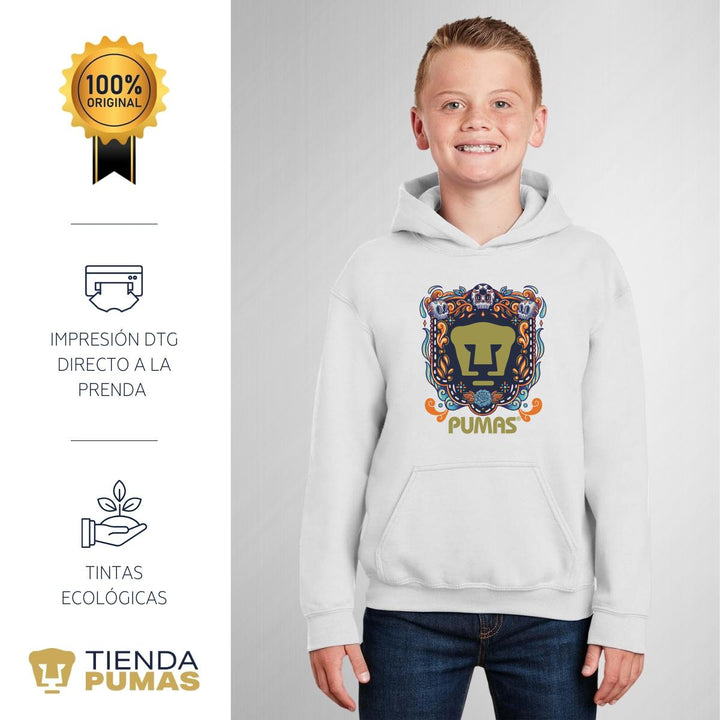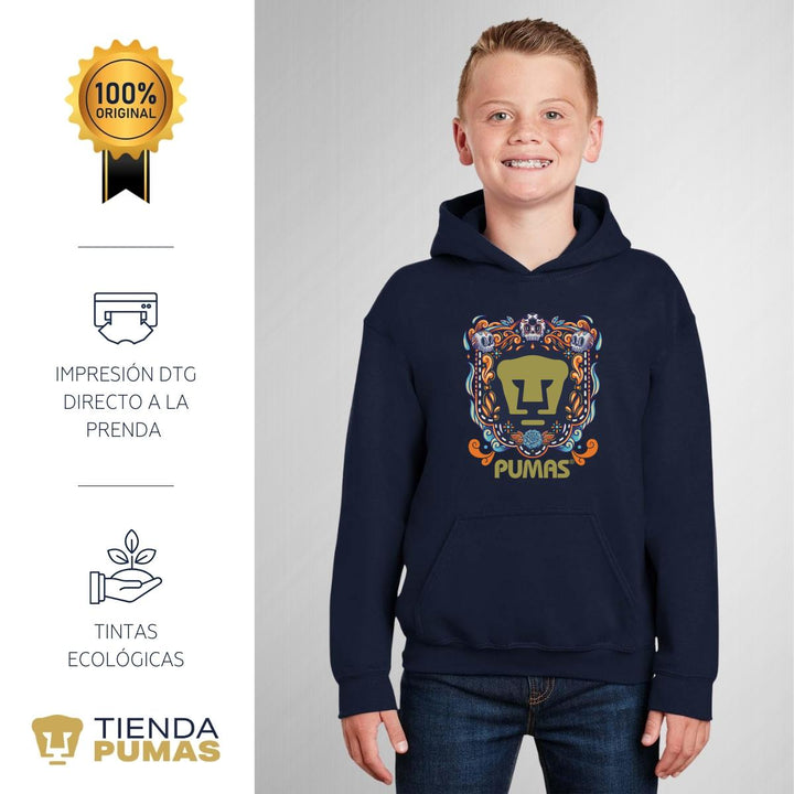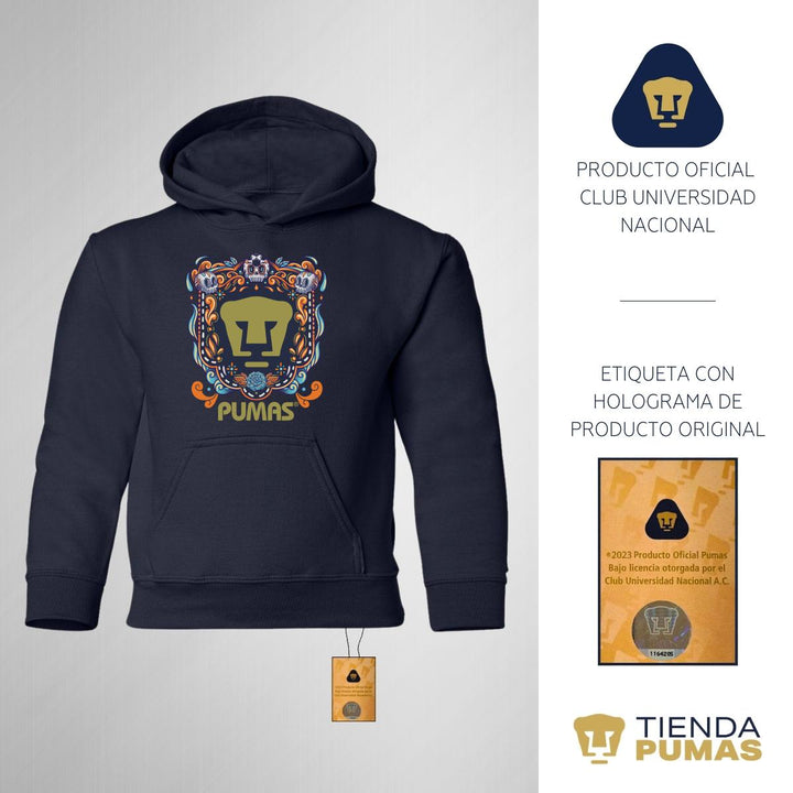 Sudadera Niños Hoodie Pumas UNAM Día de Muertos Celeste