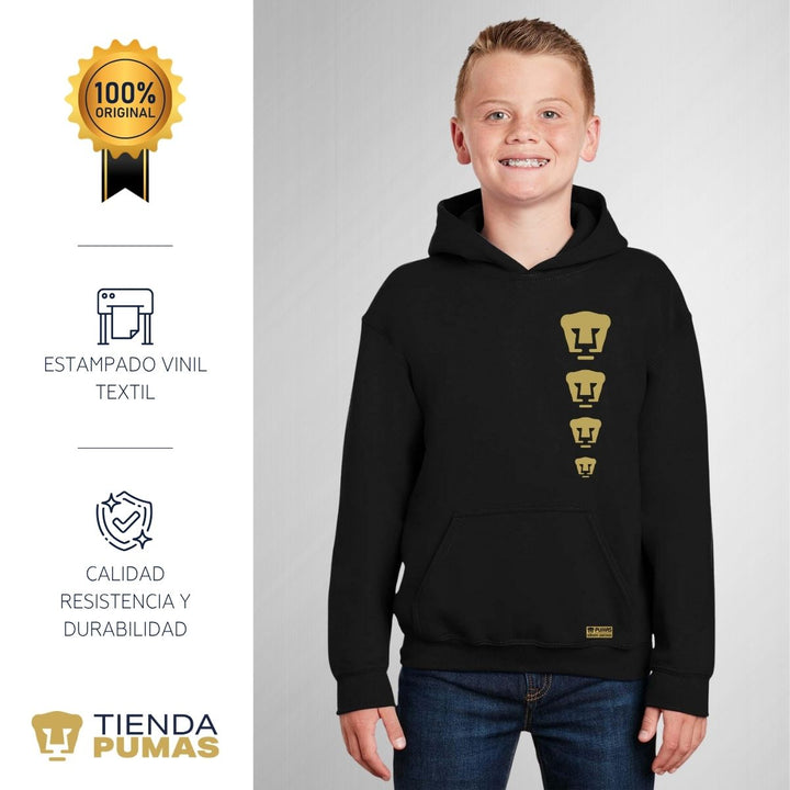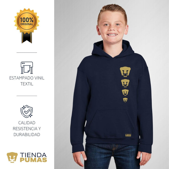 - ORIGINALIDAD: Sudadera infantil con capucha. Producto Oficial con un diseño original de Pumas UNAM estampado en vinil textil. La sudadera cuenta con etiqueta y holograma que garantiza un producto 100% original de Pumas UNAM.