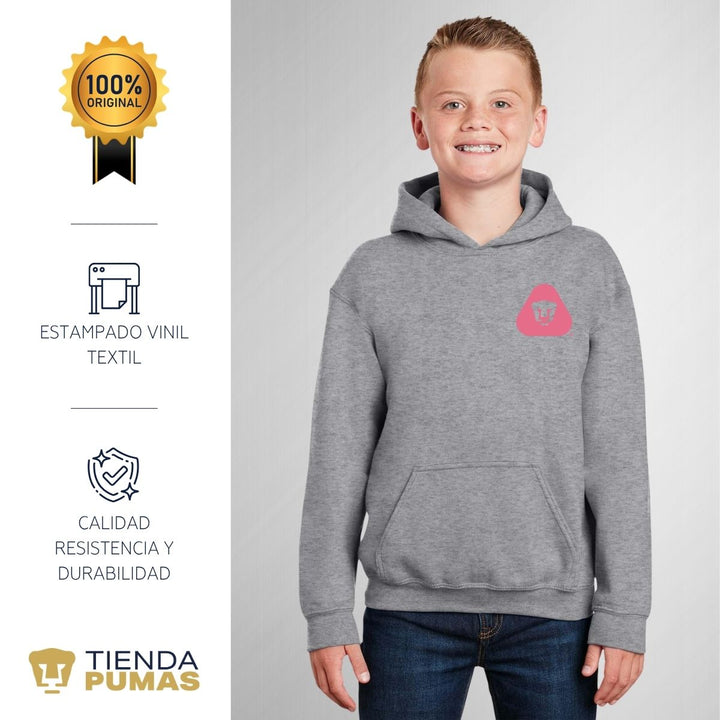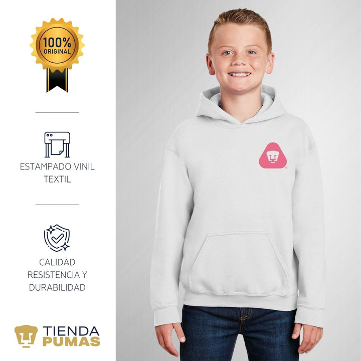 Sudadera Niños Hoodie Pumas UNAM Emblema Rosa Vinil