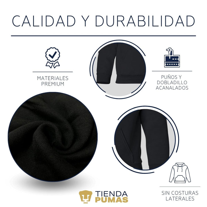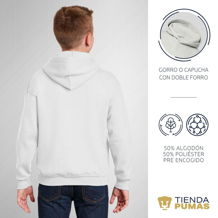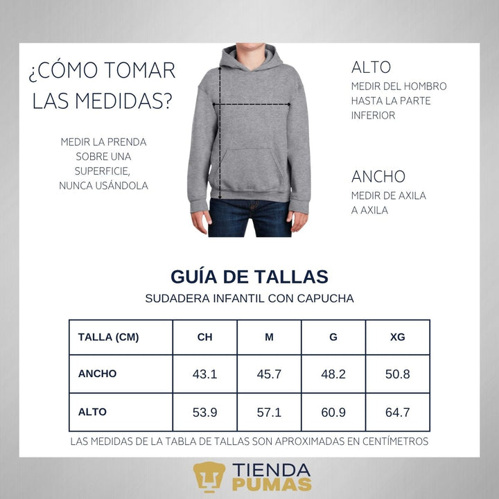- ORIGINALIDAD: Sudadera infantil con capucha. Producto Oficial con un diseño original de Pumas UNAM estampado vinil textil. La sudadera cuenta con etiqueta y holograma que garantiza un producto 100% original de Pumas UNAM.