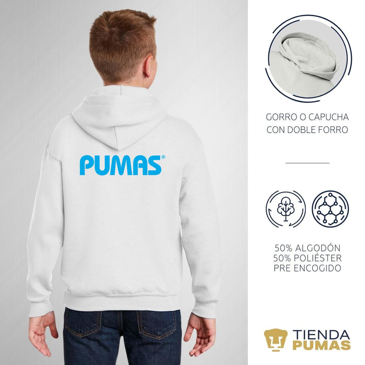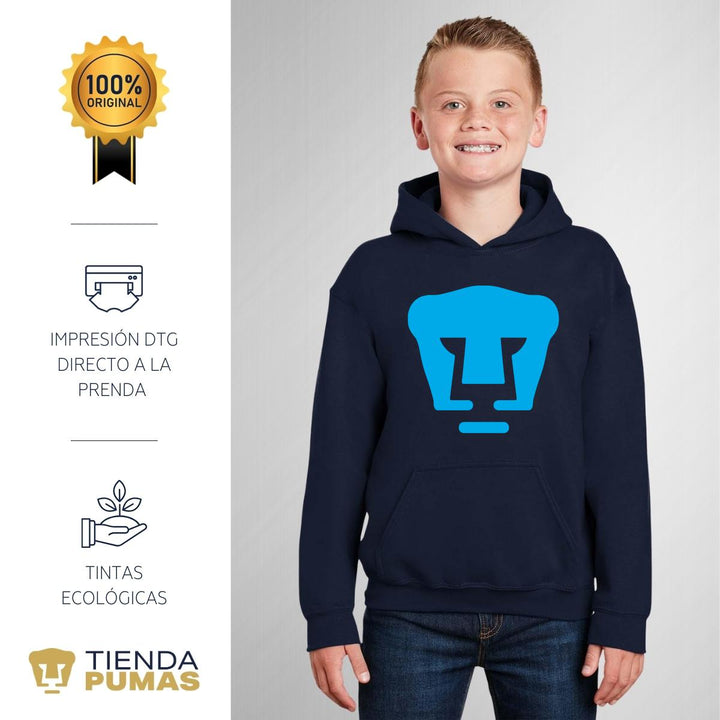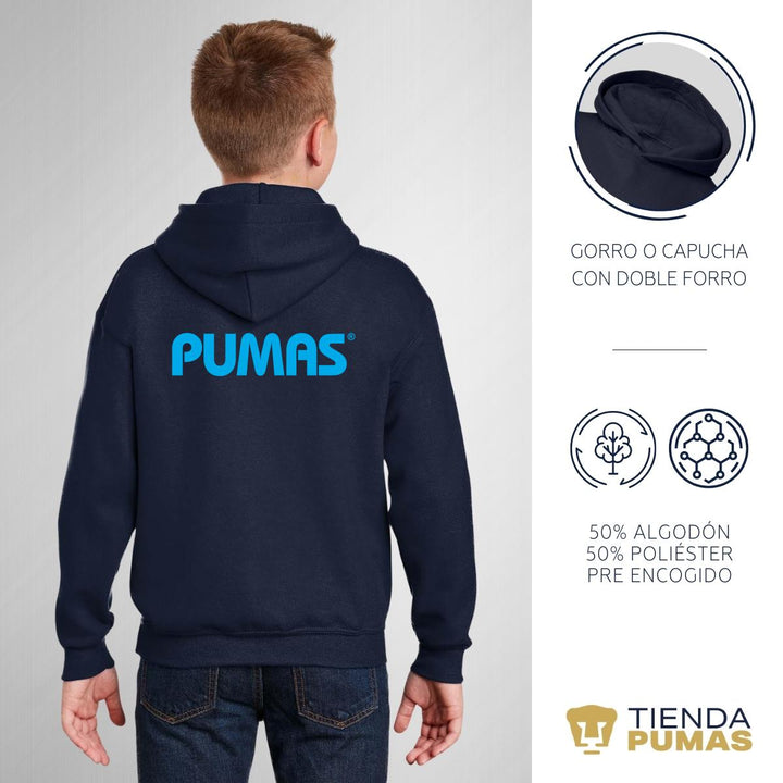 Sudadera Niños Hoodie Pumas UNAM Logo Azul báltico