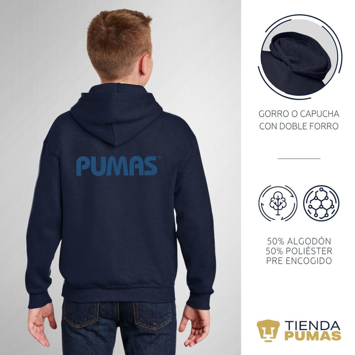 Sudadera Niños Hoodie Pumas UNAM Logo Vinil Azul