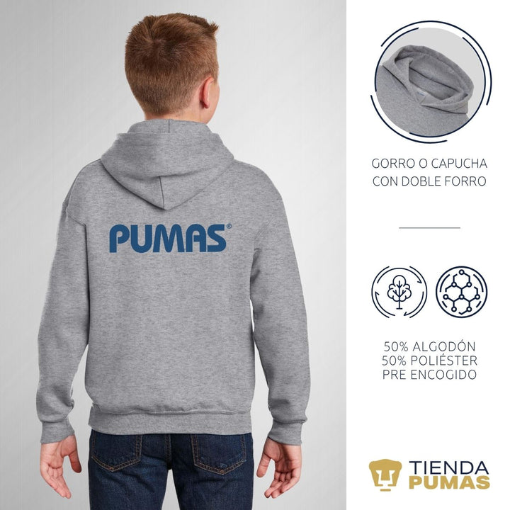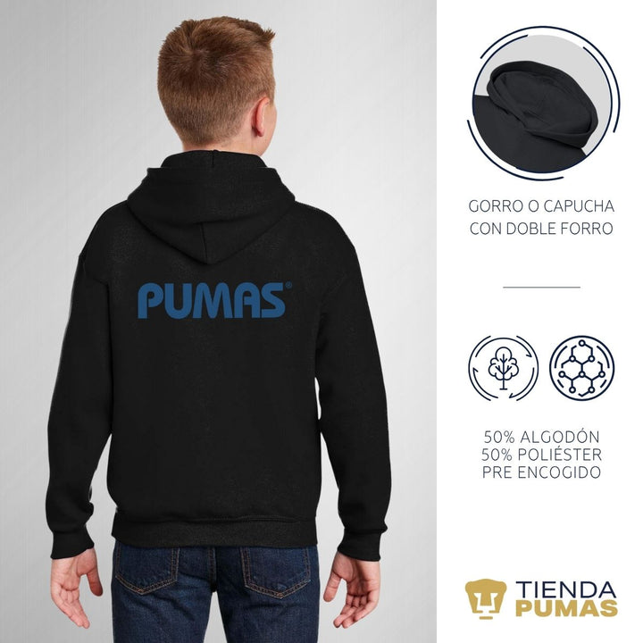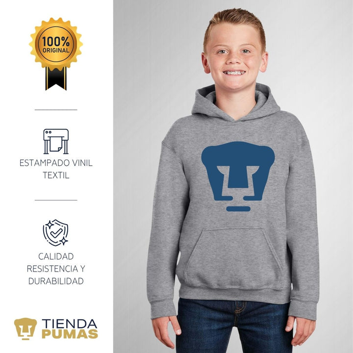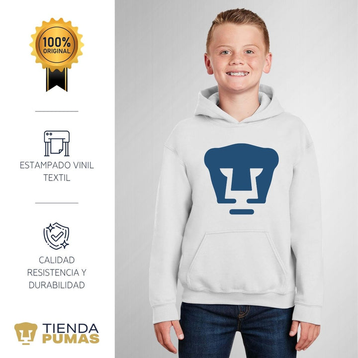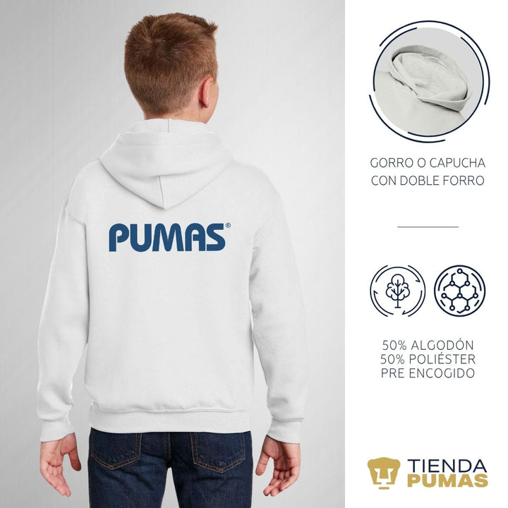 - ORIGINALIDAD: Sudadera infantil con capucha. Producto Oficial con un diseño original de Pumas UNAM estampado en vinil textil. La sudadera cuenta con etiqueta y holograma que garantiza un producto 100% original de Pumas UNAM.