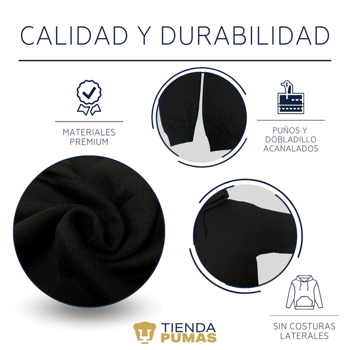 ORIGINALIDAD Y SOSTENIBILIDAD: Sudadera de adulto con capucha, Producto Oficial con un diseño original de Pumas UNAM estampado en vinil texti. La sudadera cuenta con etiqueta de holograma que garantiza un producto 100% original de Pumas UNAM.
