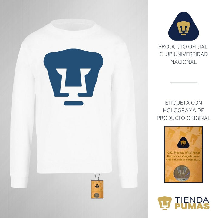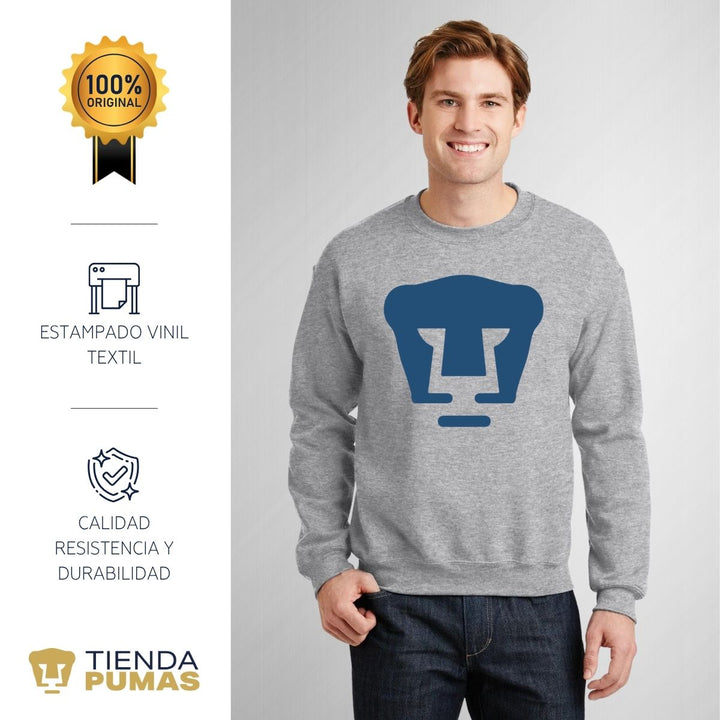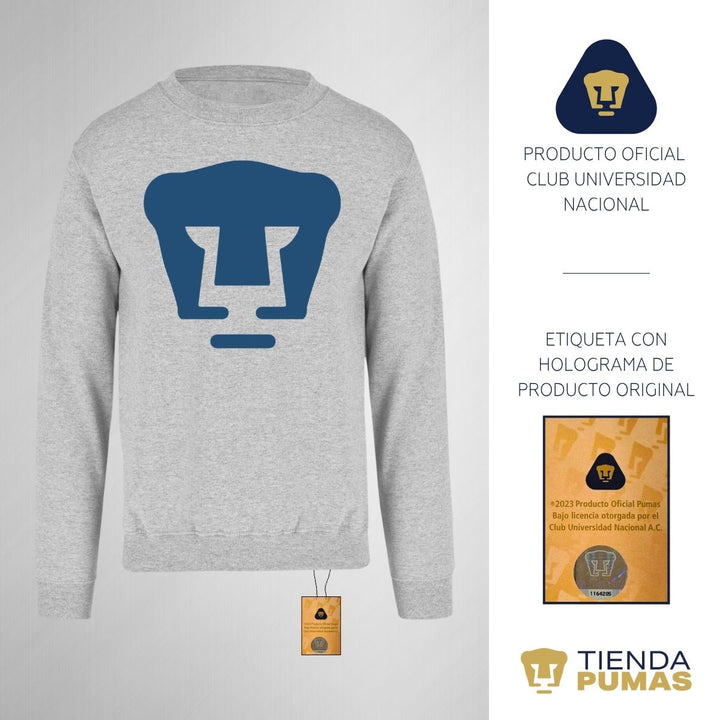 - ORIGINALIDAD: Sudadera de adulto cuello redondo sin gorro o capucha, Producto Oficial con un diseño original de Pumas UNAM estampado en vinil textil. La sudadera cuenta además con etiqueta y holograma que garantiza un producto 100% original de Pumas UNAM.